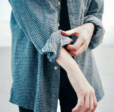 ㅤ ㅤHe takes to wear black clothing with simple design on it, or most likely to wore a rolled-up sleeve shirt as an outer over a short-sleeved black t-shirt.