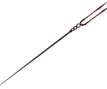 Given by Hades to Gerald when he was twelve years oldIt could blast dark energy bolt after a few seconds of rechargeGerald could make it elongated as a spear or shortened as a dagger on his own willForged using Stygian Iron